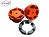 NM Flexible Coupling1.Construction: 1)NM type is precisely produced by a special designed synthetic rubber with 2 similar bodies of cast iron Cast iron flanges: 2)Designed not only for the power transmission but also for protection of flexible rubber Flexible rubber: 3)Made of rubber and steel cores are inserted in the teeth so as to provide excellent durability and performance of coupling 2.Applications: pumps, fans, compressors, vehicles, transporting equipments, constructors, cement mixers, tractors, transmission machines, metal working machines, rollers and all other transmissions 3.Features: 1)Economical and practical using 2)Quiet and smooth operation 3)Easy installation and maintenance 4)Available to machines with high torque and intermittent operation 5)Characteristics of the synthetic rubber: proper elasticity and resistance to damping, oil, acids and alkalies Coupling NM Type TorqueMax.speed rpm. Bore diameterBoss diam (D)Outside diam. (OD)Distance(L)Space &perm. Toleranceapprox. Weight (kgs.)Normal (Kg*m) Max. (Kg*m) Min. Max.501.32.313,5007193350252.0±0.50.48672.2410,0008284667302.5±0.51.02825.098,00010325382403.0±1.01.889710.5197,00010426997503.0±1.03.5411216.7306,000144879112603.5±1.05.4012826.7485,000185590128693.5±1.08.1014841.7754,5002265107148803.5±1.013.5016869.51254,0002875124168903.5±1.519.30194112.02003,5003285140198983.5±1.526.30214167.03003,00045951582181124.0±2.035.70